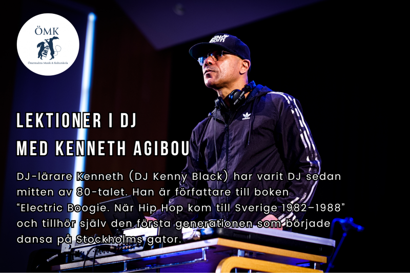 Vår DJ-lärare Kenny Black har lång erfarenhet som professionell DJ och har skrivit en bok om svensk hip-hop kultur under 80-talet.